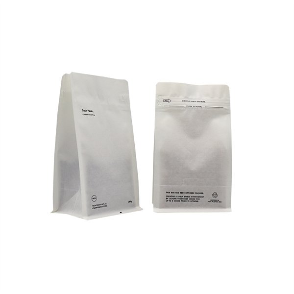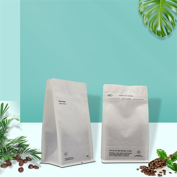 Compostable white block bottom kraft paper coffee bags food packaging supplies
