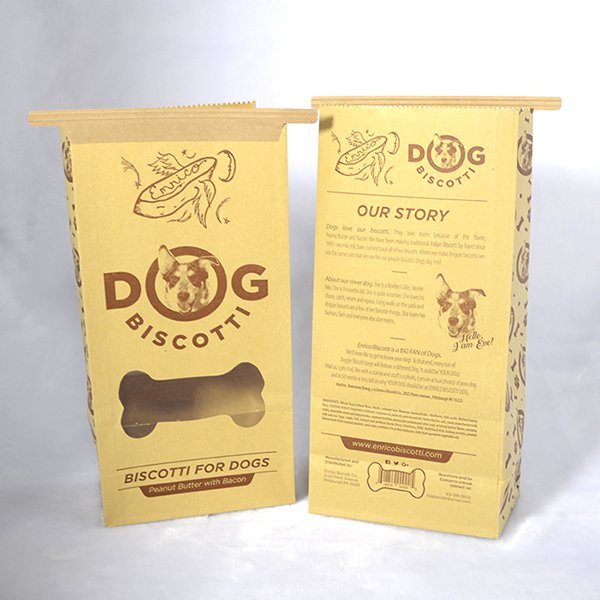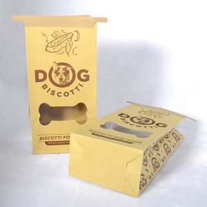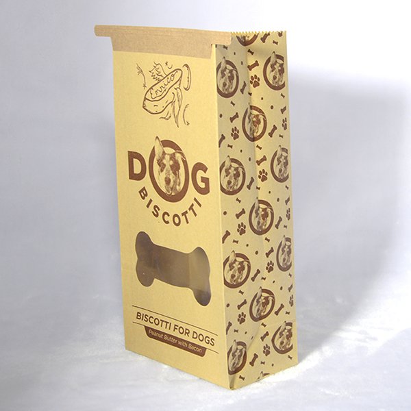 Natural pet food bag flat bottom clip kraft paper bags with window
